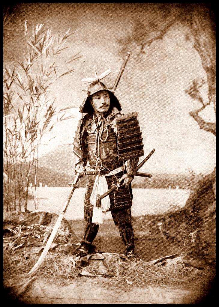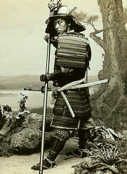 NOT ENAMI, BUT THE SAME ARMOR WORN BY AN UNKNOWN MODEL FOR ENAMI'S ALBUMEN PRINT AND LANTERN-SLIDE No.581 "JAPANESE ANCIENT WARRIOR".