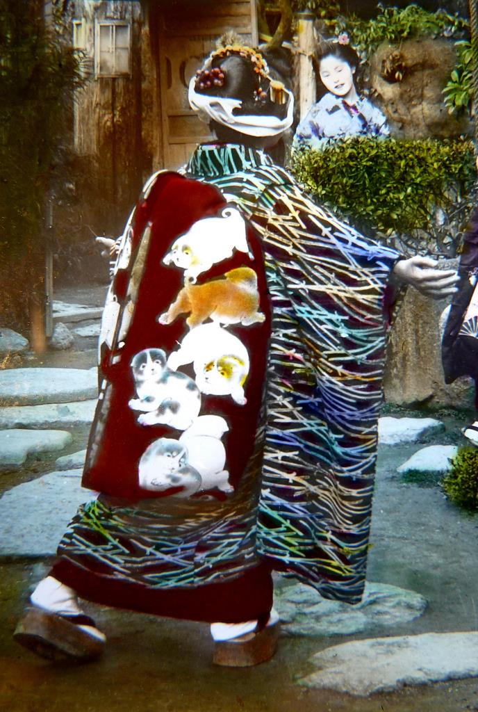 The colorists were true artists, and could transform any b/w print, slide, or stereoview into a delicate work of great beauty, as evidenced by the two version above. The total cost for 100 of these highly detailed, hand-tinted stereoviews 110 years ago ? 28 YEN !
