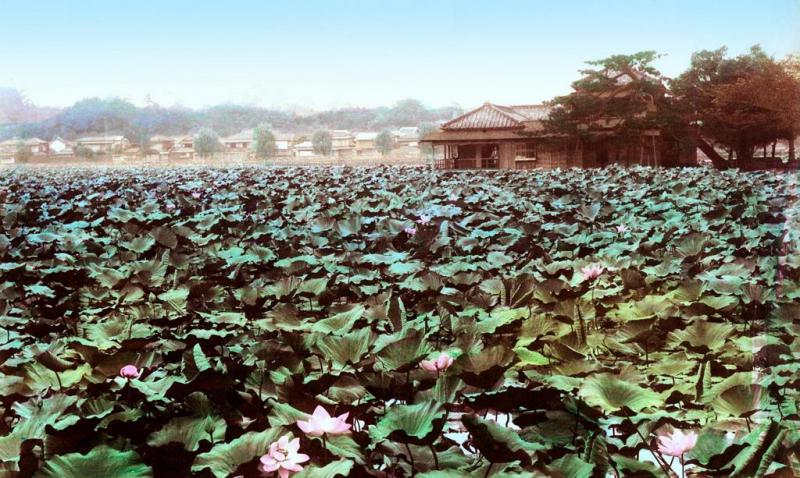 The tones and hues of every view were different depending on the mood and fancy of the studio colorist on the day the slide or print order was filled. An original version of the above slide is also in the collections of the Peabody-Essex Museum in Salem, Massachusetts. Although their version seems to have been taken at a different hour, and under a different sky, it is the same view. Enami's studio was where art and photography always seemed to meet in an agreeable fashion.