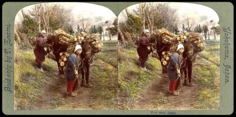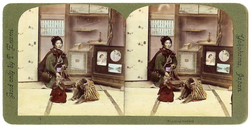 Enami's focus on people would continue grow, forming an ever-increasing percentage of images as he expanded into the stereoview format. Well over half of his stereoviews (and the lantern-slides made from them) are of close, people-inclusive subjects, and mark Enami's style long after the days of "Yokohama Album Views" had passed.