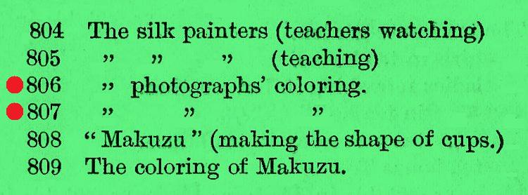 Over 800 of these images have been cataloged, with many appearing on Enami slide mounts, and as illustrations in books utilizing other known Enami images.